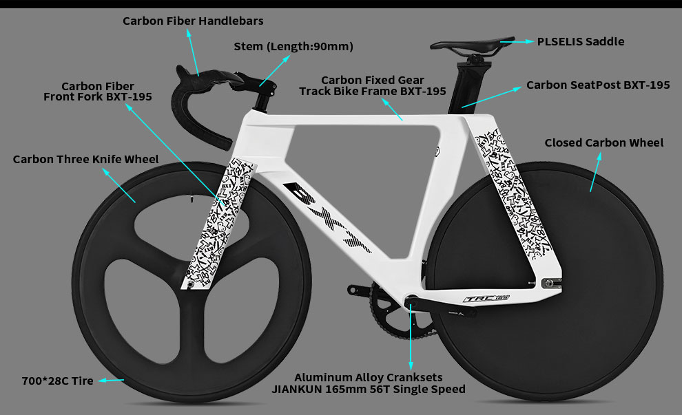 Ultra-Lightweight Construction: Every element of a BXT Track Bike—from the carbon fiber frame to the precision-machined components—has been engineered to minimize weight without compromising durability or performance.